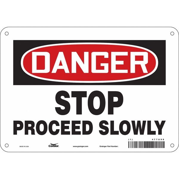 Danger, STOP PROCEED SLOWLY, 10 in W x 7 in H, Vertical Rectangle, Aluminum, 477U98