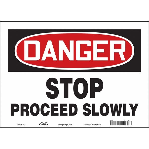 Danger, STOP PROCEED SLOWLY, 14 in W x 10 in H, Horizontal Rectangle, Vinyl, 477V07