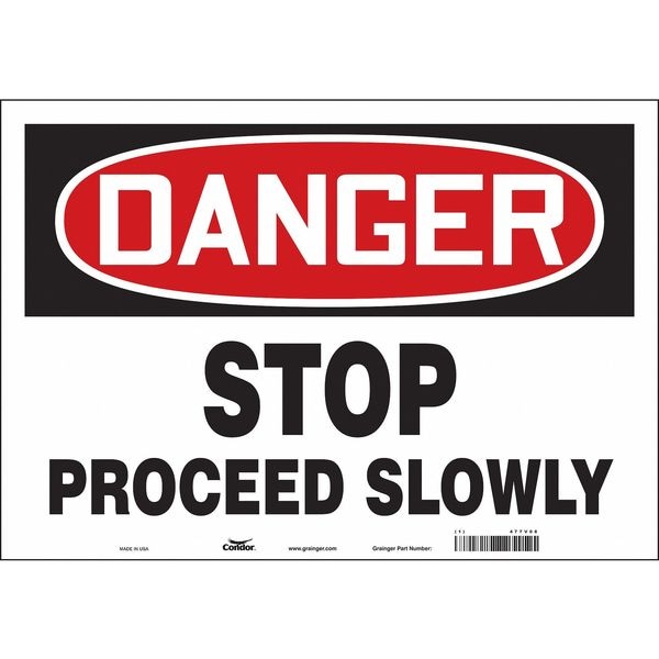 Danger, STOP PROCEED SLOWLY, 20 in W x 14 in H, Horizontal Rectangle, Vinyl