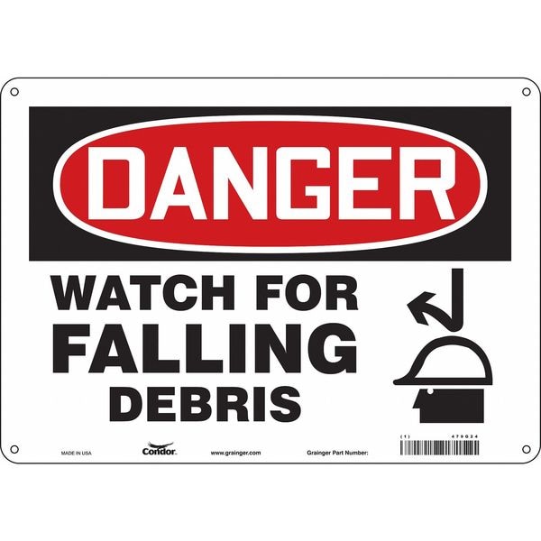 Danger, WATCH FOR FALLING DEBRIS, 14 in W x 10 in H, Horizontal Rectangle, Polyethylene, 479G24