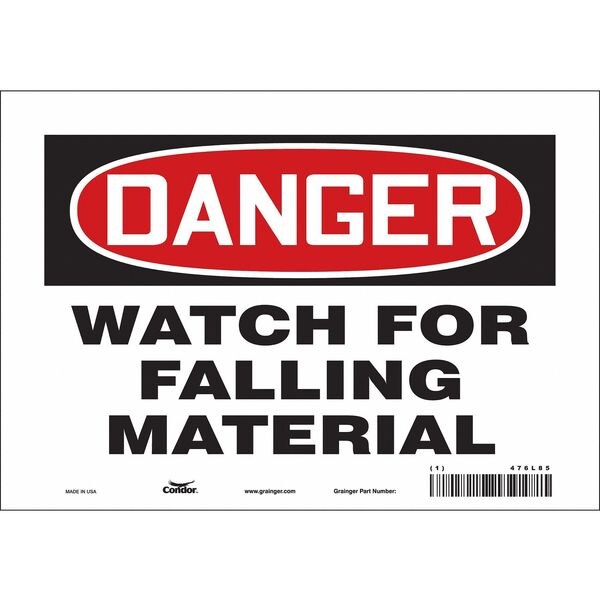 Danger, WATCH FOR FALLING MATERIAL, 10 in W x 7 in H, Vertical Rectangle, Vinyl, 476L85
