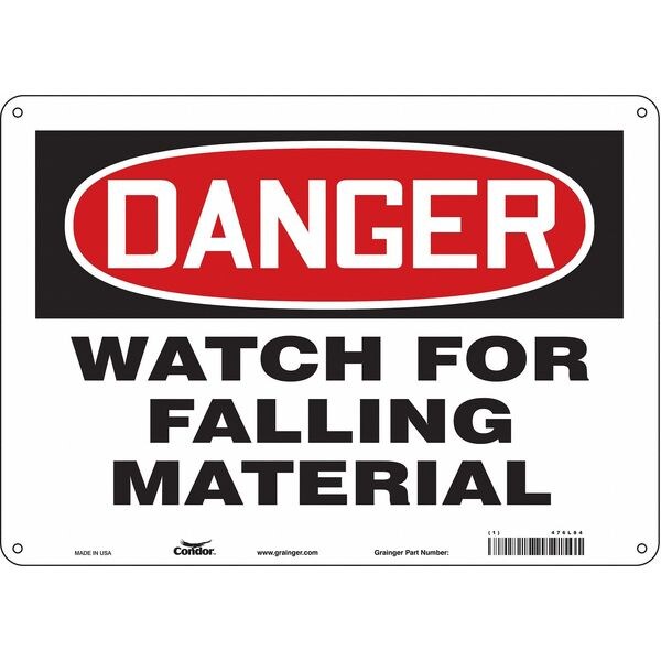 Danger, WATCH FOR FALLING MATERIAL, 14 in W x 10 in H, Horizontal Rectangle, Polyethylene, 476L84