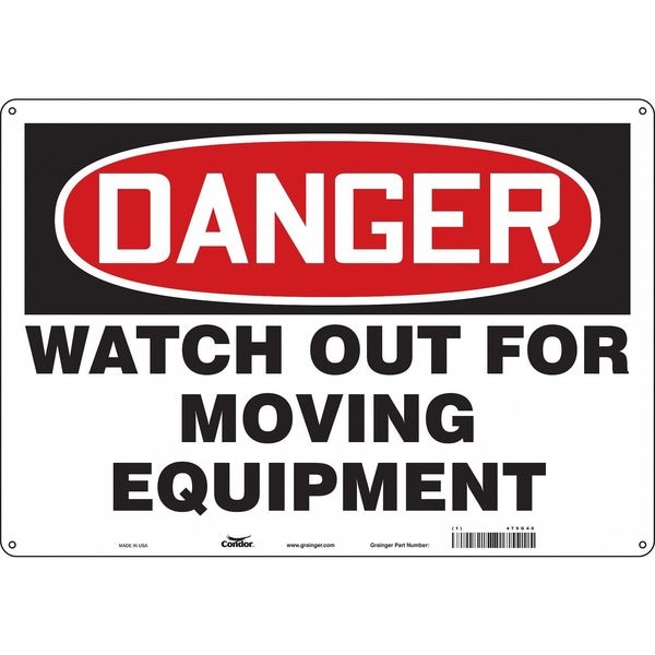 Danger, WATCH OUT FOR MOVING EQUIPMENT, 20 in W x 14 in H, Horizontal Rectangle, Polyethylene