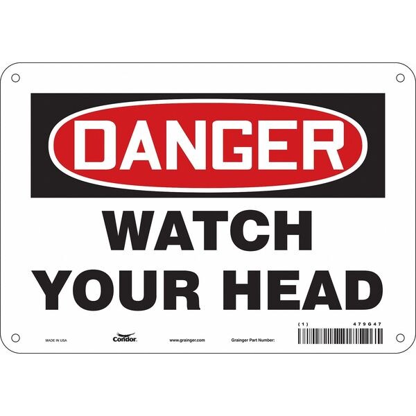 Danger, WATCH YOUR HEAD, 10 in W x 7 in H, Vertical Rectangle, Polyethylene, 479G47