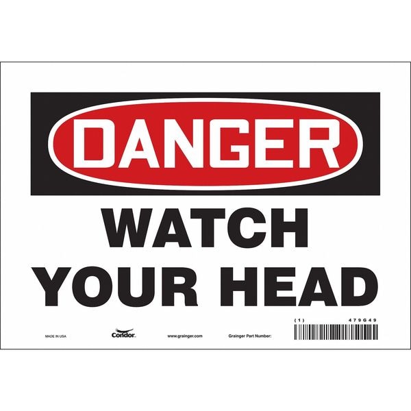 Danger, WATCH YOUR HEAD, 10 in W x 7 in H, Vertical Rectangle, Vinyl, 479G49