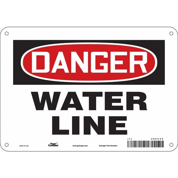 Danger, WATER LINE, 10 in W x 7 in H, Vertical Rectangle, Polyethylene, 486C42