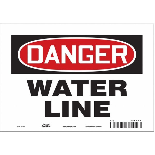 Danger, WATER LINE, 10 in W x 7 in H, Vertical Rectangle, Vinyl, 486C44