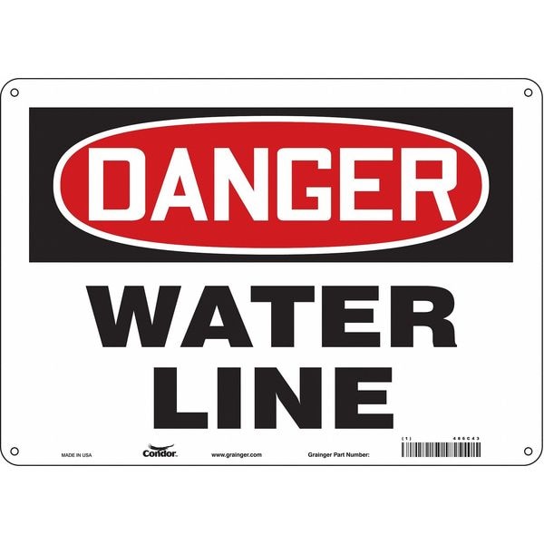 Danger, WATER LINE, 14 in W x 10 in H, Horizontal Rectangle, Polyethylene, 486C43