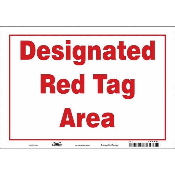 Safety Sign, Vertical Rectangle, Number of Printed Sides 1, English, Sign Format Other Format, Sign Legend Designated Red Tag Area, Sign Legend Background Color White, Sign Legend Style Text