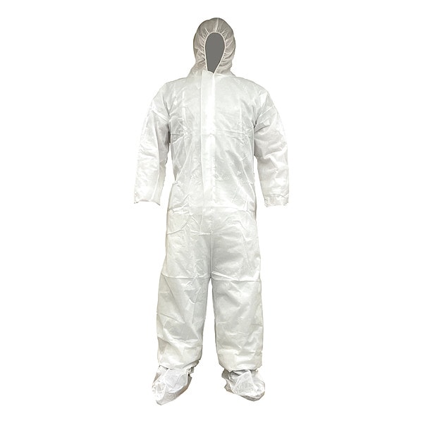 Hooded Coveralls, Ankle Closure Not Applicable, ANSI 107 Performance Class Not Applicable, Anti-Static No, ATPV Rating Not Applicable, Attached Glove Material Not Applicable, Attached Glove Style Not Included, Attached Hood Yes, Breathable Back Style Not Applicable, Chest Size - Maximum 21 1/2 in, Clean Process Status Not Clean Processed, Closure Type Zipper, Collar Style Not Applicable, Color White, Coverall Style Hooded, Cuff Style Elastic, EPA Protection Level Not Applicable