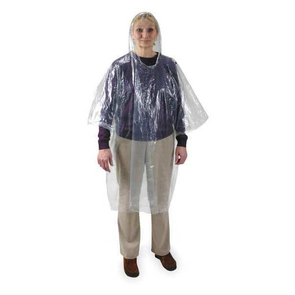 Disposable Rain Poncho, Clear, Polyethylene, Pull-On, 40 in Lg, 0.02 mm Thick, 24 Per Pack