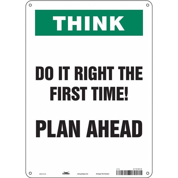 Safety Sign, Vertical Rectangle, Number of Printed Sides 1, English, Sign Format Other Format, Sign Legend Do It Right The First Time! Plan Ahead, Sign Legend Background Color Green, White, Sign Legend Style Text