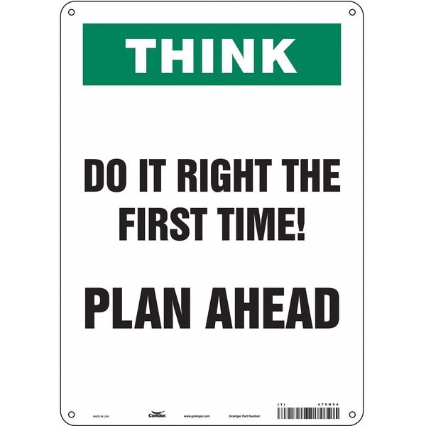 Safety Sign, Vertical Rectangle, Number of Printed Sides 1, English, Sign Format Other Format, Sign Legend Do It Right The First Time! Plan Ahead, Sign Legend Background Color Green, White, Sign Legend Style Text