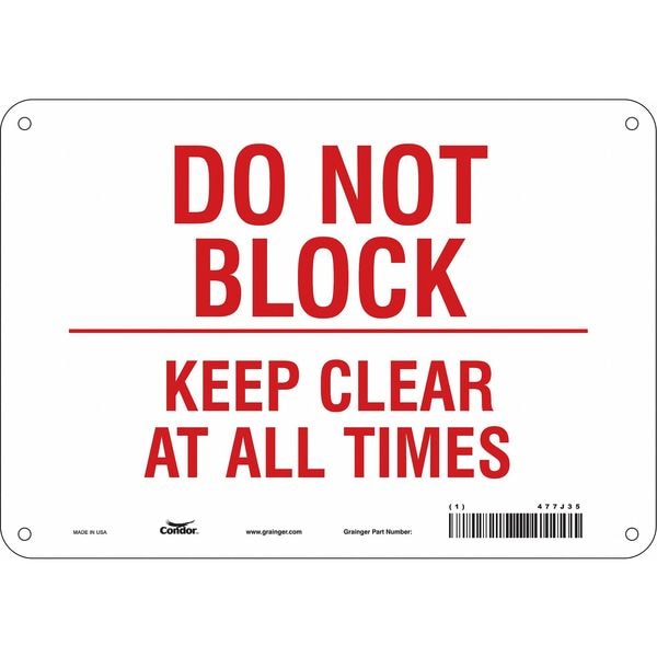 DO NOT BLOCK KEEP CLEAR AT ALL TIMES, 10 in W x 7 in H, Vertical Rectangle, Polyethylene, 477J35