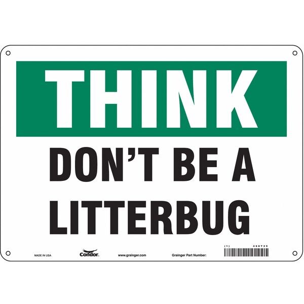 Safety Sign, Horizontal Rectangle, Number of Printed Sides 1, English, Sign Format Other Format, Sign Legend Think Don't Be A Litterbug, Sign Legend Background Color Green, White, Sign Legend Style Text
