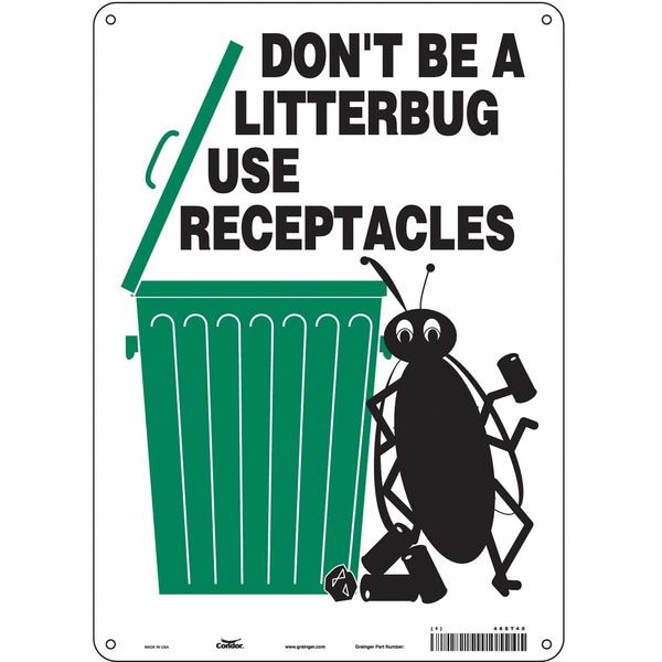 Don't Be A Litterbug Use Receptacles, 10 in W x 14 in H, Vertical Rectangle, Polyethylene, 468T40