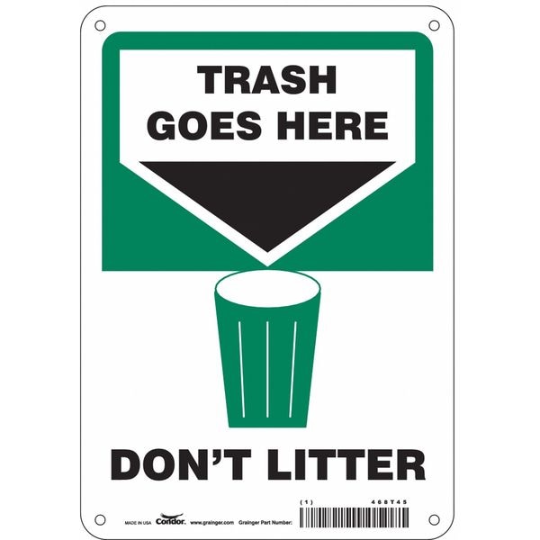 Don't Litter, 7 in W x 10 in H, Horizontal Rectangle, Polyethylene, 468T45