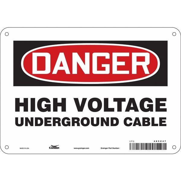 Electrical Sign, Vertical Rectangle, Number of Printed Sides 1, English, Sign Format Traditional OSHA, Sign Legend High Voltage Underground Cable, Sign Legend Background Color White, Sign Legend Style Text