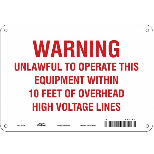 Electrical Sign, Vertical Rectangle, Number of Printed Sides 1, English, Sign Format Other Format, Sign Legend Warning Unlawful To Operate This Equipment Within 10 Feet Of Overhead High Voltage Lines, Sign Legend Background Color White, Sign Legend Style Text