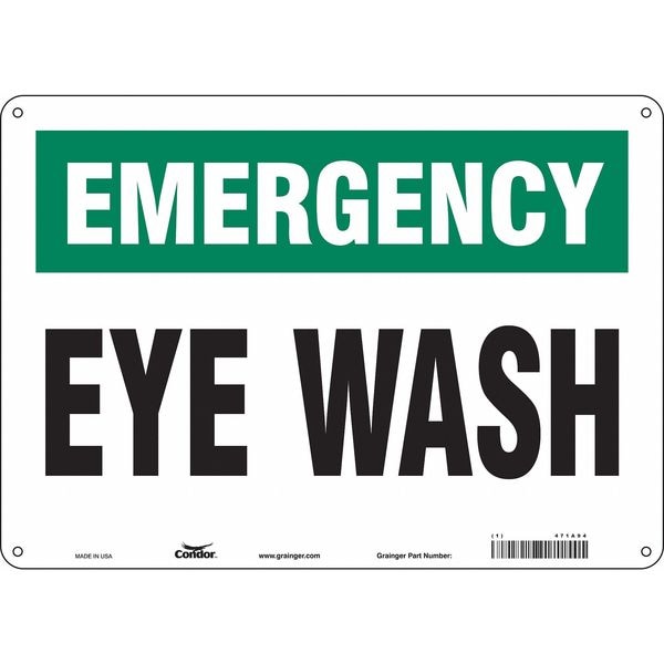 Safety Sign, Horizontal Rectangle, Number of Printed Sides 1, English, Sign Legend Eye Wash, Sign Legend Background Color Green, White, Sign Legend Style Text