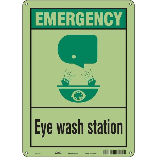 Safety Sign, Vertical Rectangle, Number of Printed Sides 1, English, Sign Format Other Format, Sign Legend Eye Wash Station, Sign Legend Background Color Green, White, Sign Legend Style Symbol and Text
