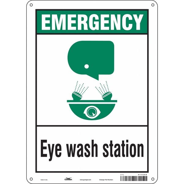 Safety Sign, Vertical Rectangle, Number of Printed Sides 1, English, Sign Legend Eye Wash Station, Sign Legend Background Color Green, White, Sign Legend Style Symbol and Text