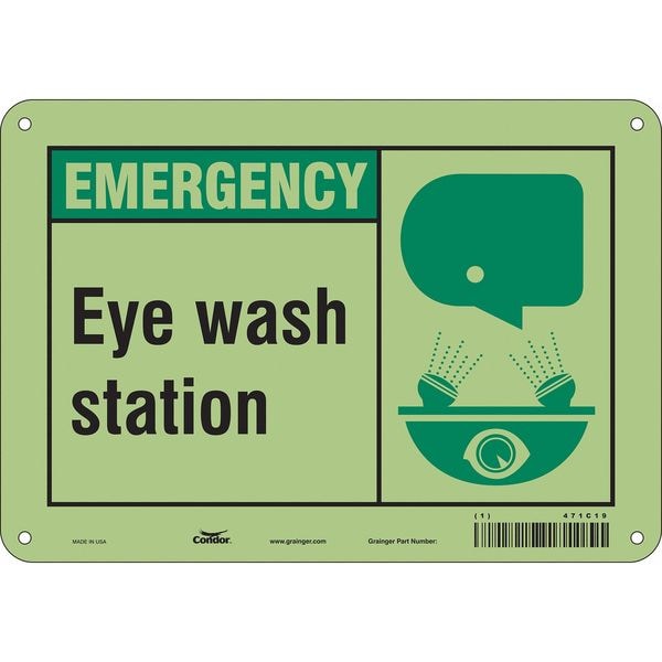 Safety Sign, Vertical Rectangle, Number of Printed Sides 1, English, Sign Format Other Format, Sign Legend Eye Wash Station, Sign Legend Background Color Green, White, Sign Legend Style Symbol and Text