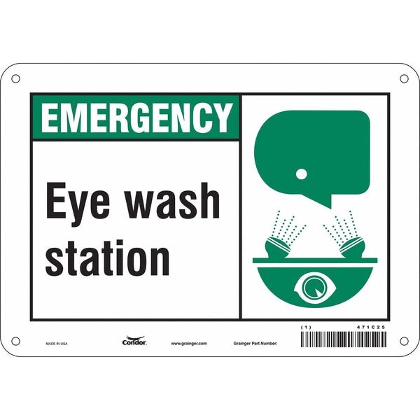 Safety Sign, Vertical Rectangle, Number of Printed Sides 1, English, Sign Legend Eye Wash Station, Sign Legend Background Color Green, White, Sign Legend Style Symbol and Text