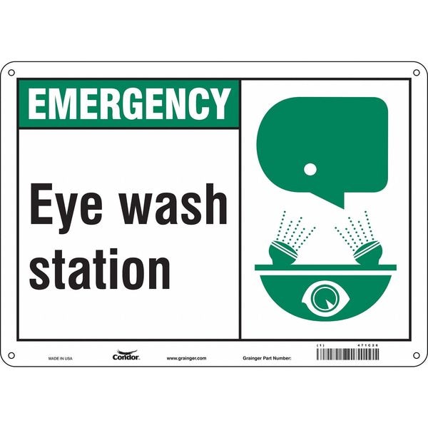 Safety Sign, Horizontal Rectangle, Number of Printed Sides 1, English, Sign Legend Eye Wash Station, Sign Legend Background Color Green, White, Sign Legend Style Symbol and Text