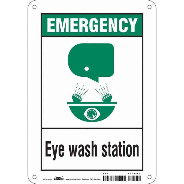 Safety Sign, Horizontal Rectangle, Number of Printed Sides 1, English, Sign Legend Eye Wash Station, Sign Legend Background Color Green, White, Sign Legend Style Symbol and Text
