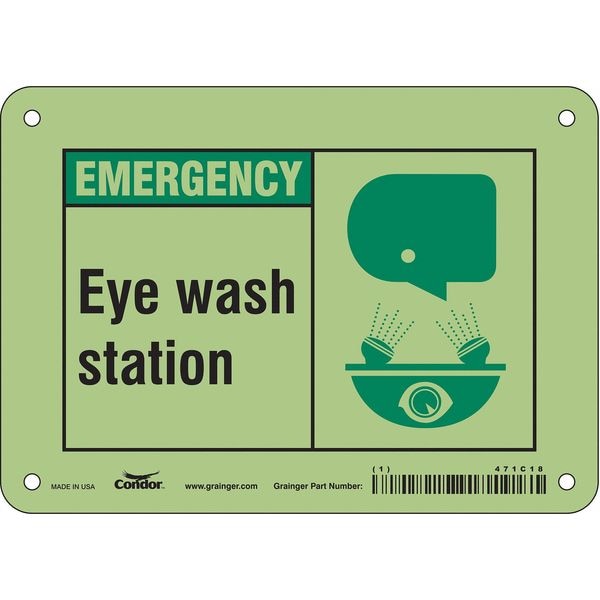 Safety Sign, Horizontal Rectangle, Number of Printed Sides 1, English, Sign Legend Eye Wash Station, Sign Legend Background Color Green, White, Sign Legend Style Symbol and Text