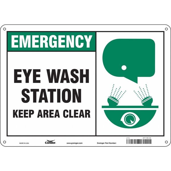 Emergency, Eye Wash Station Keep Area Clear, 14 in x 10 in, Rectangle, Polyethylene, 471C43