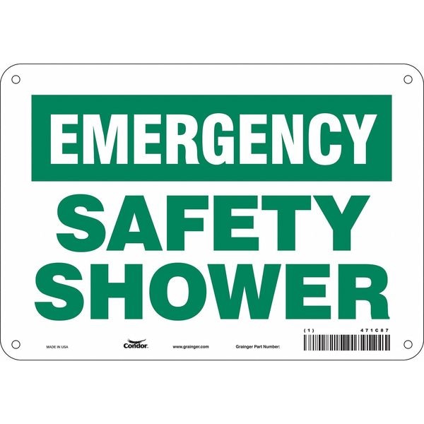 Safety Sign, Vertical Rectangle, Number of Printed Sides 1, English, Sign Legend Safety Shower, Sign Legend Background Color Green, White, Sign Legend Style Text