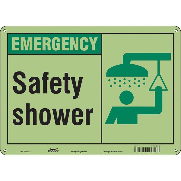 Safety Sign, Horizontal Rectangle, Number of Printed Sides 1, English, Sign Format Other Format, Sign Legend Safety Shower, Sign Legend Background Color Green, White, Sign Legend Style Symbol and Text