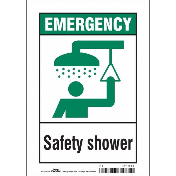 Emergency, Safety Shower, 7 in W x 10 in H, Horizontal Rectangle, Vinyl, 471C85
