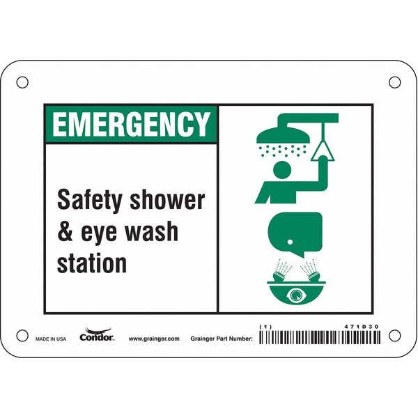 Emergency, Safety Shower & Eye Wash Station, 7 in x 5 in, Horizontal Rectangle, Polyethylene, 471D30