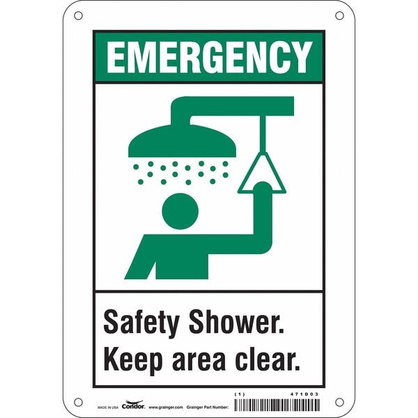 Emergency, Safety Shower. Keep Area Clear., 7 in W x 10 in H, Rectangle, Polyethylene, 471D03