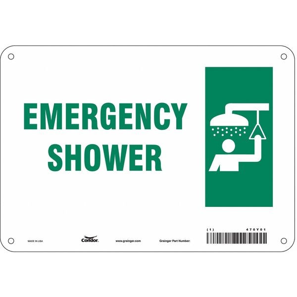 Safety Sign, Vertical Rectangle, Number of Printed Sides 1, English, Sign Legend Emergency Shower, Sign Legend Background Color Green; White, Sign Legend Style Symbol and Text