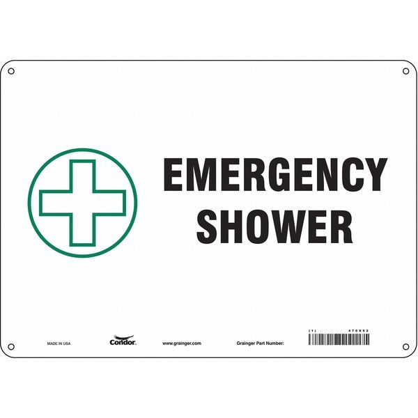 Safety Sign, Horizontal Rectangle, Number of Printed Sides 1, English, Sign Legend Emergency Shower, Sign Legend Background Color White, Sign Legend Style Symbol and Text