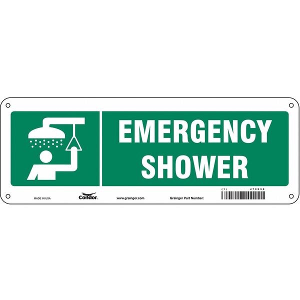 Safety Sign, Vertical Rectangle, Number of Printed Sides 1, English, Sign Format Other Format, Sign Legend Emergency Shower, Sign Legend Background Color Green, Sign Legend Style Symbol and Text