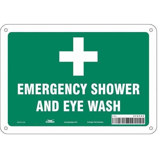 Safety Sign, Vertical Rectangle, Number of Printed Sides 1, English, Sign Legend Emergency Shower And Eye Wash, Sign Legend Background Color Green, Sign Legend Style Symbol and Text