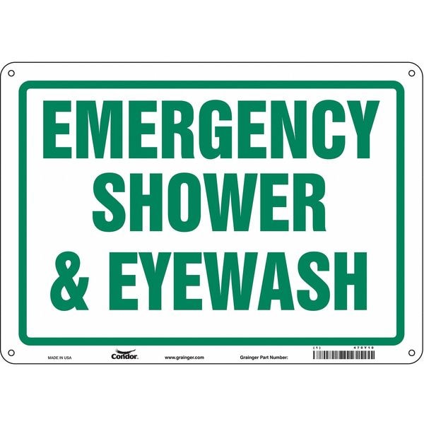 Safety Sign, Horizontal Rectangle, Number of Printed Sides 1, English, Sign Legend Emergency Shower & Eyewash, Sign Legend Background Color White, Sign Legend Style Text