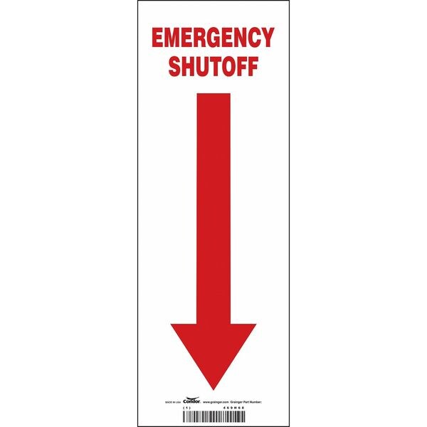 EMERGENCY SHUTOFF, Vinyl, 14 in x 5 in, Adhesive