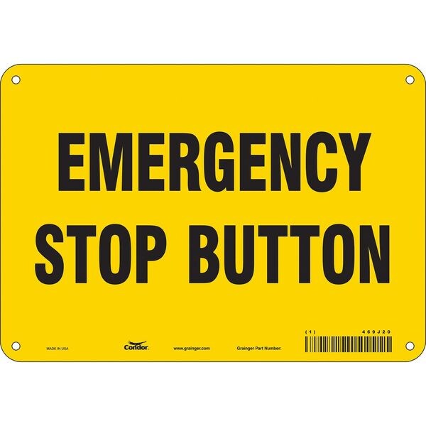 SAFETY SIGN FIRE AND EMERGENCY, Vertical Rectangle, Number of Printed Sides 1, English, Sign Legend Emergency Stop Button, Sign Legend Background Color Yellow, Sign Legend Style Text