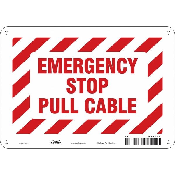 SAFETY SIGN FIRE AND EMERGENCY, Vertical Rectangle, Number of Printed Sides 1, English, Sign Legend Emergency Stop Pull Cable, Sign Legend Background Color Red, White, Sign Legend Style Text