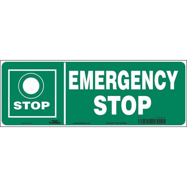Emergency Stop Sign, 14" W, 5" H, Vinyl, Green, White
