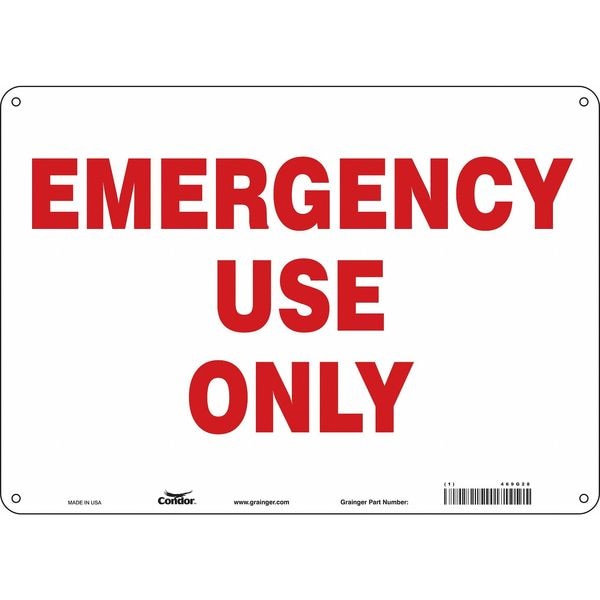 SAFETY SIGN FIRE AND EMERGENCY, Horizontal Rectangle, Number of Printed Sides 1, English, Sign Format Other Format, Sign Legend Emergency Use Only, Sign Legend Background Color White, Sign Legend Style Text