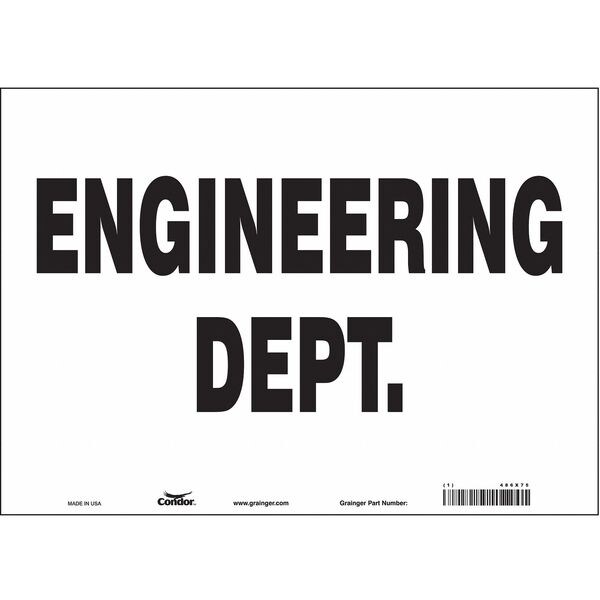 Safety Sign, Horizontal Rectangle, Number of Printed Sides 1, English, Sign Legend Engineering Dept., Sign Legend Background Color White, Sign Legend Style Text