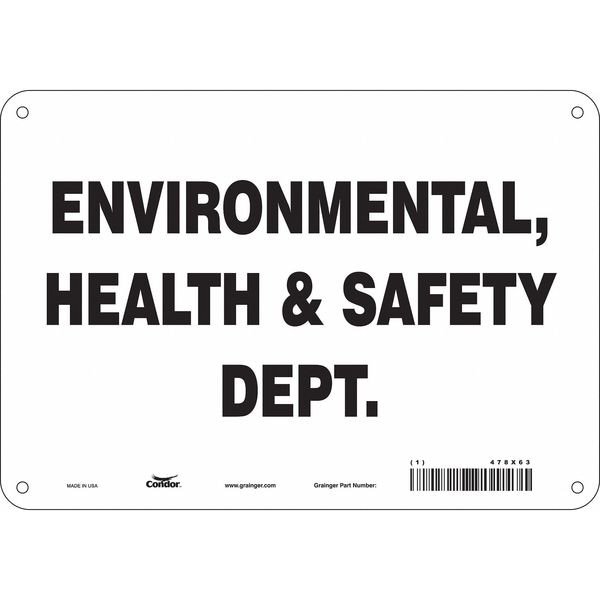 ENVIRONMENTAL, HEALTH & SAFETY DEPT., 10 in W x 7 in H, Vertical Rectangle, Polyethylene, 478X63