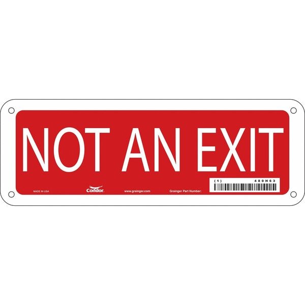 Exit Sign, Aluminum, 10" W, 3-1/2" H, Not An Exit, Red, White